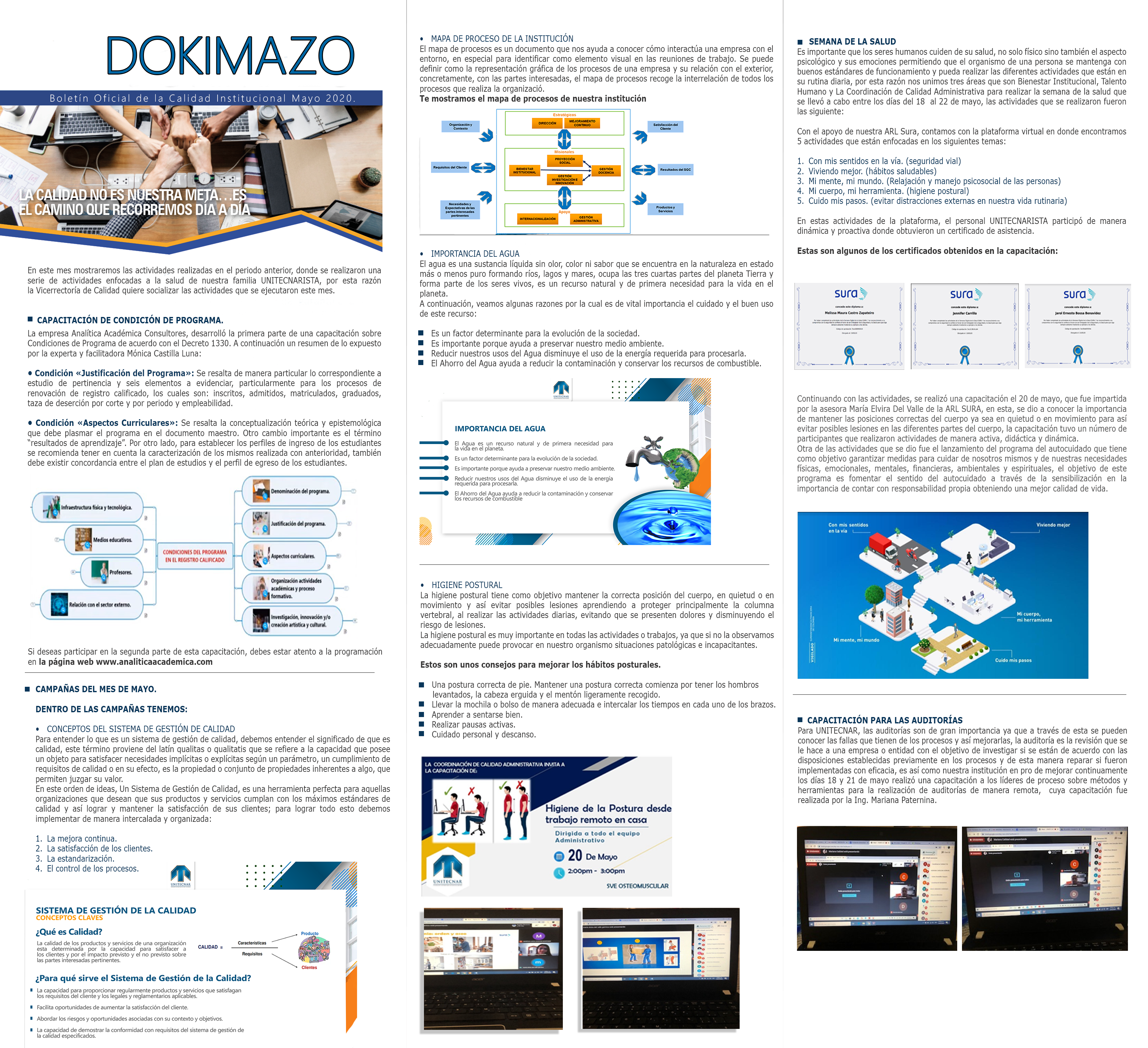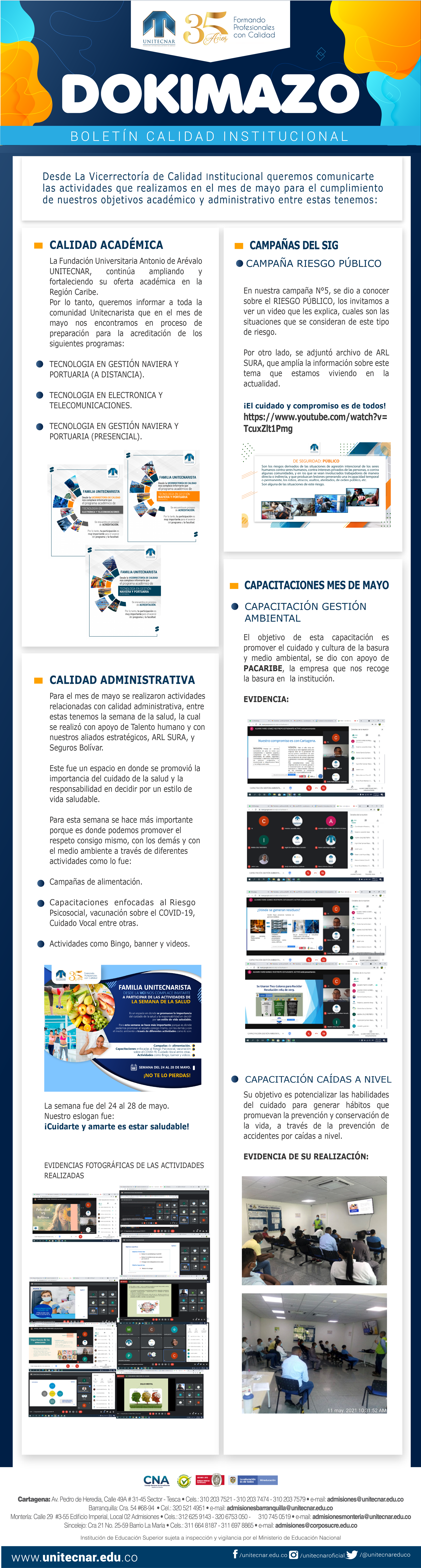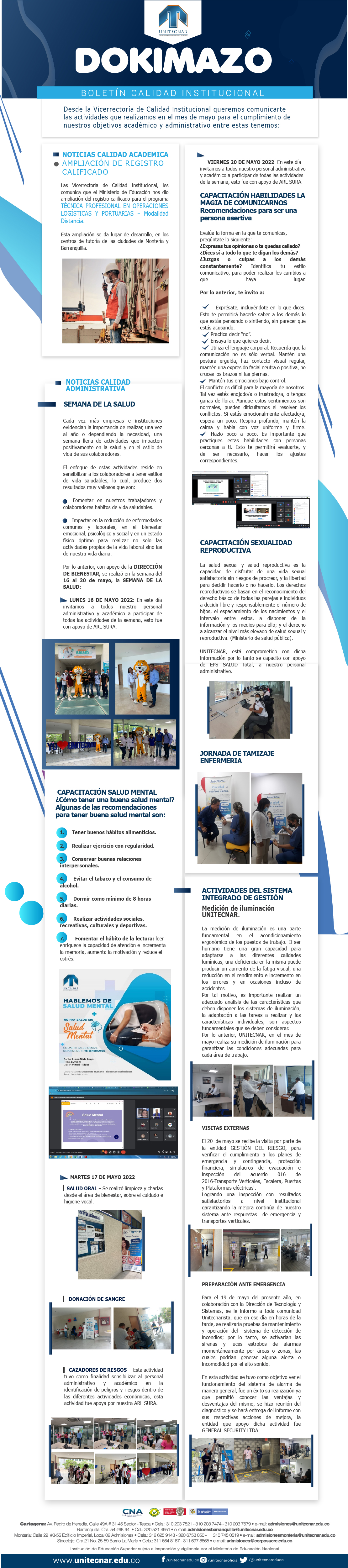 Familia Unitecnarista, a través de este comunicado, queremos compartir con ustedes las actividades desarrolladas durante el mes de mayo, orientadas al cumplimiento de nuestros objetivos académicos y administrativos