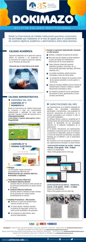 Desde el área de Calidad Académica desarrollamos las siguientes actividades a lo largo del mes de agosto: