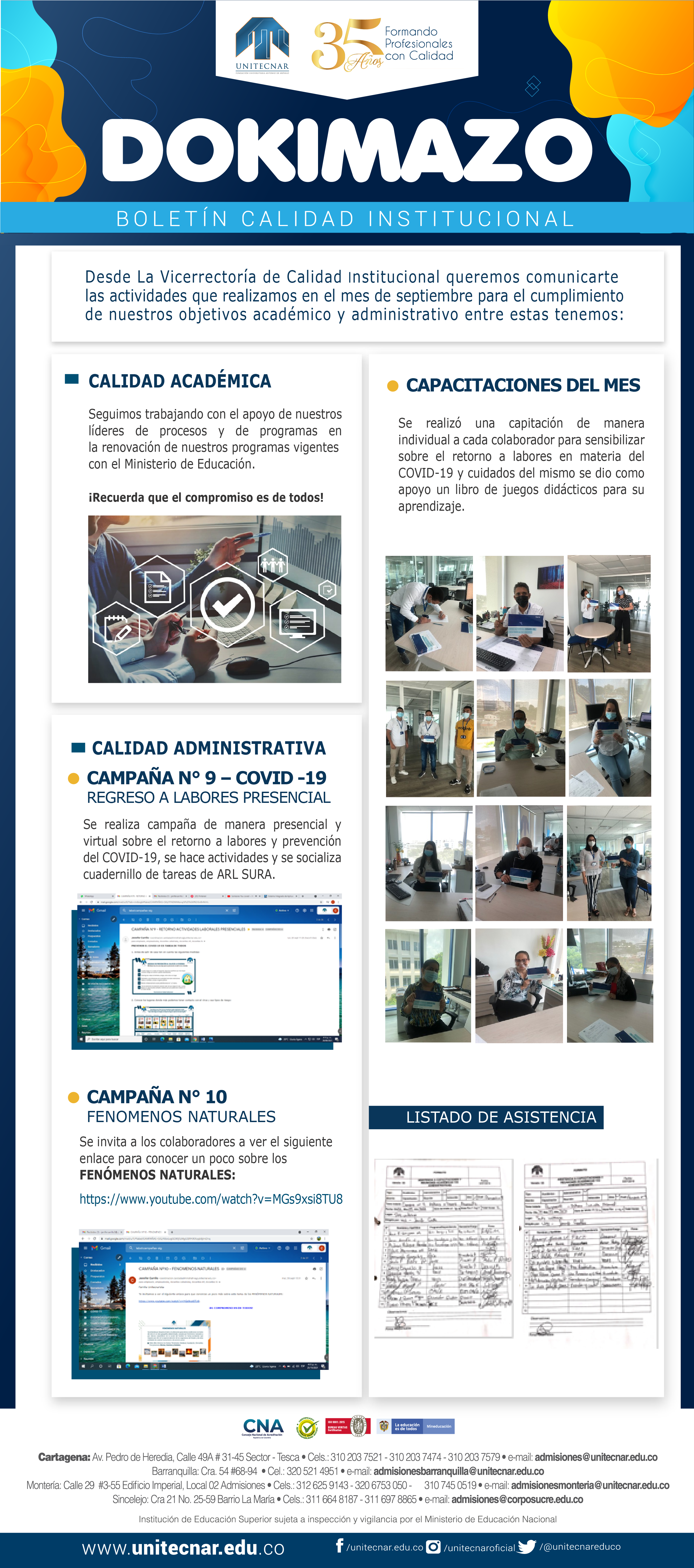 Desde el área de Calidad Académica desarrollamos las siguientes actividades a lo largo del mes de Septiembre:
