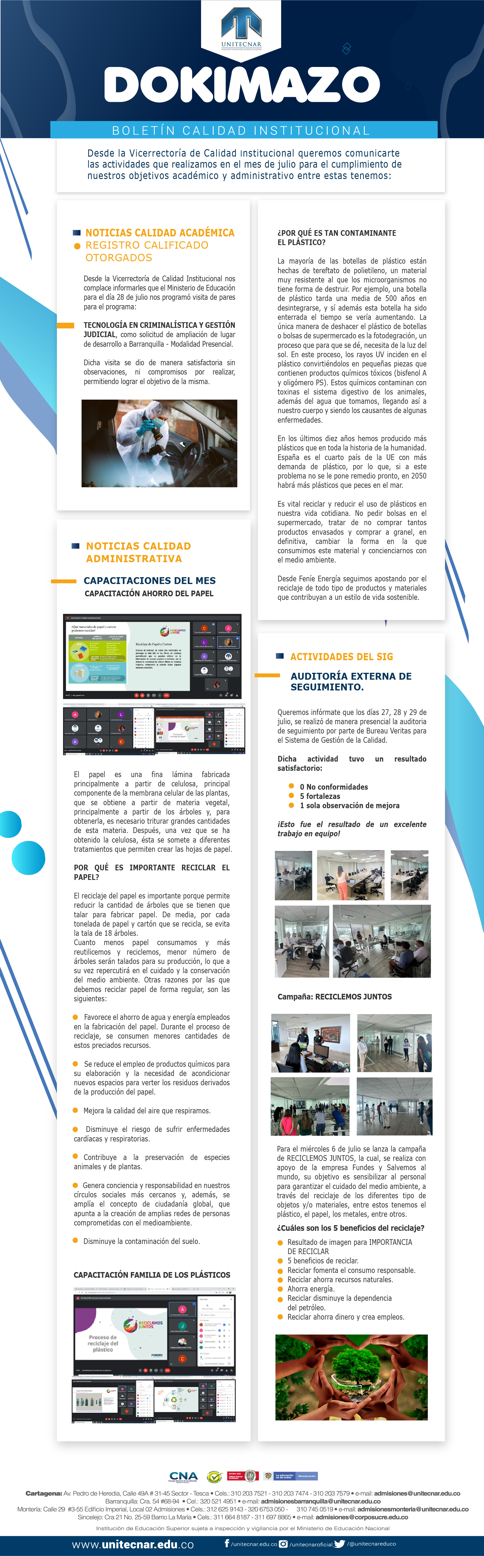A través del presente informe, compartimos las actividades desarrolladas durante el mes de julio, en coherencia con nuestros objetivos administrativos y académicos. Cada una de estas acciones refleja el compromiso continuo de nuestro equipo por mejorar y fortalecer nuestro Sistema Integrado de Gestión (SIG).