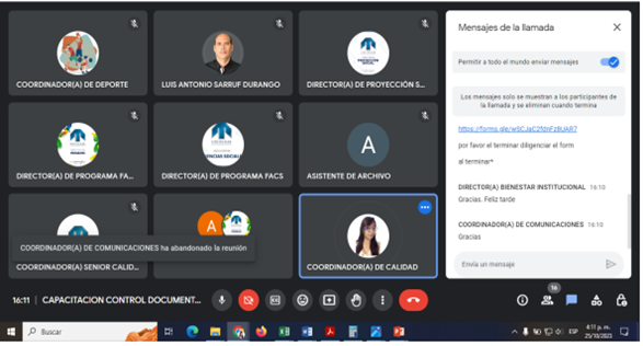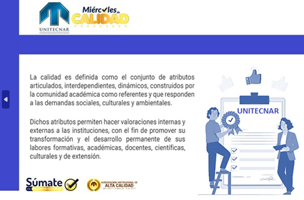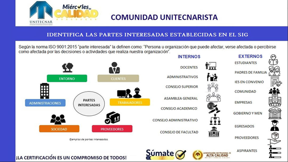 Desde Vicerrectoría de Calidad, hacen participación los miembros de cada proceso en la participación de capacitación y sensibilización, donde conocieron aspectos relevantes y todo lo concerniente al sistema integrado de gestión.