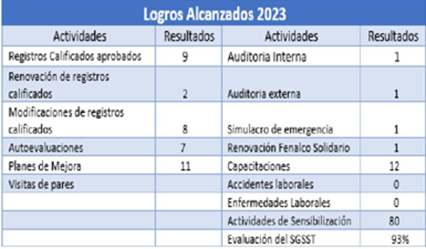 En seguridad y salud en el trabajo, la implementación del sistema alcanza un 88%, con un cumplimiento del 98.75% en los estándares legales vigentes. Además, la ARL AXA Colpatria certifica el compromiso institucional con la prevención y mejora continua en esta materia.
