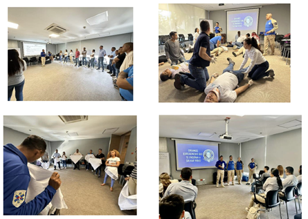 Se llevó a cabo una capacitación dirigida a los miembros de la brigada de emergencias, con el propósito de desarrollar habilidades y conocimientos básicos en primeros auxilios. El curso proporcionó herramientas para identificar y atender situaciones de emergencia médica, facilitando intervenciones oportunas y seguras que contribuyen a preservar la vida y minimizar daños hasta la llegada de personal especializado.