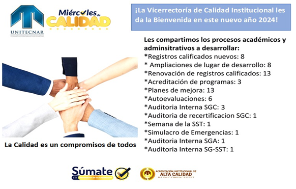La vicerrectoría de calidad institucional, quiere agradecer a todos por su compromiso y participación durante el año 2023 en los procesos de aseguramiento de la calidad.