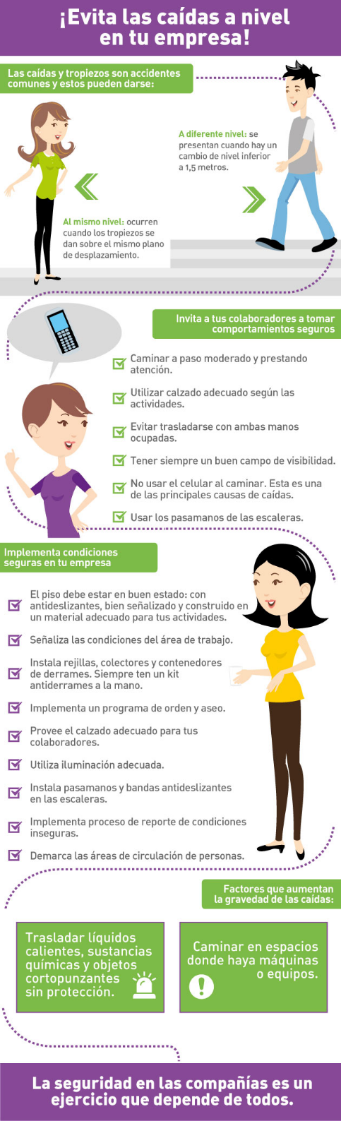 - Es importante concientizar al personal de los riesgos derivados de la superficie de tránsito y de trabajo.