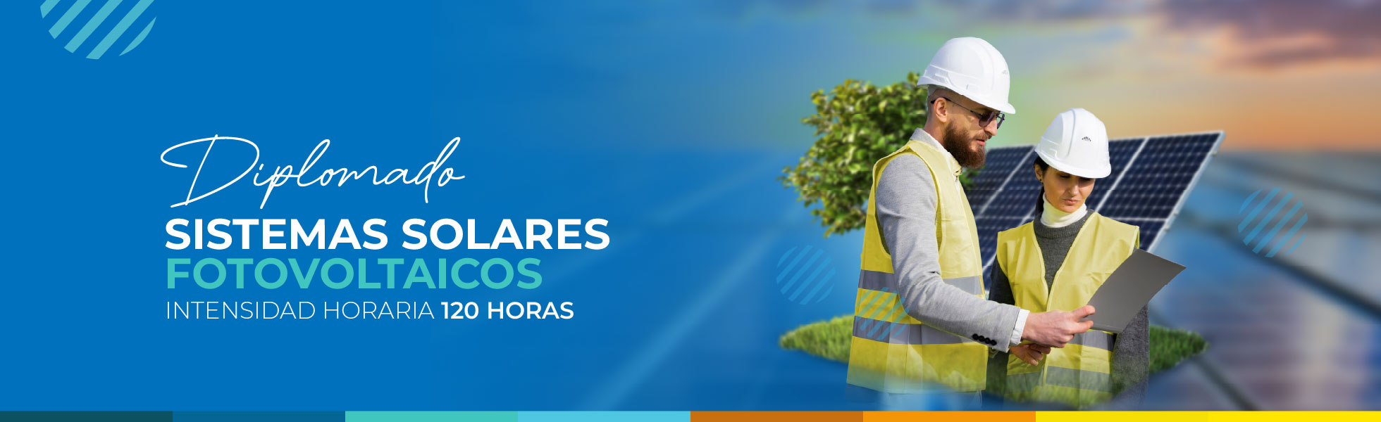 La puesta en marcha de los sistemas solares fotovoltaicos y los cambios regulatorios aportados por la CREG abren el panorama para que los ingenieros y tecnólogos en áreas concernientes a las nuevas tecnologías estén actualizados con el diseño y puesta en marcha de instalaciones de sistemas solares fotovoltaicos. Desde la perspectiva académica y práctica, UNITECNAR ofrece el Diplomado en Sistemas Solares Fotovoltaicos para que los participantes estén en capacidad de diseñar y dimensionar un sistema solar fotovoltaico conectado a la red o desconectado de esta.