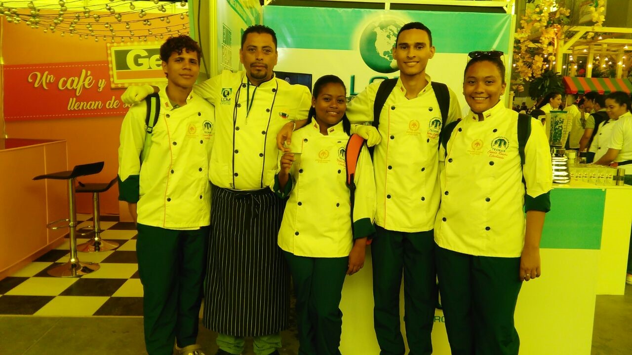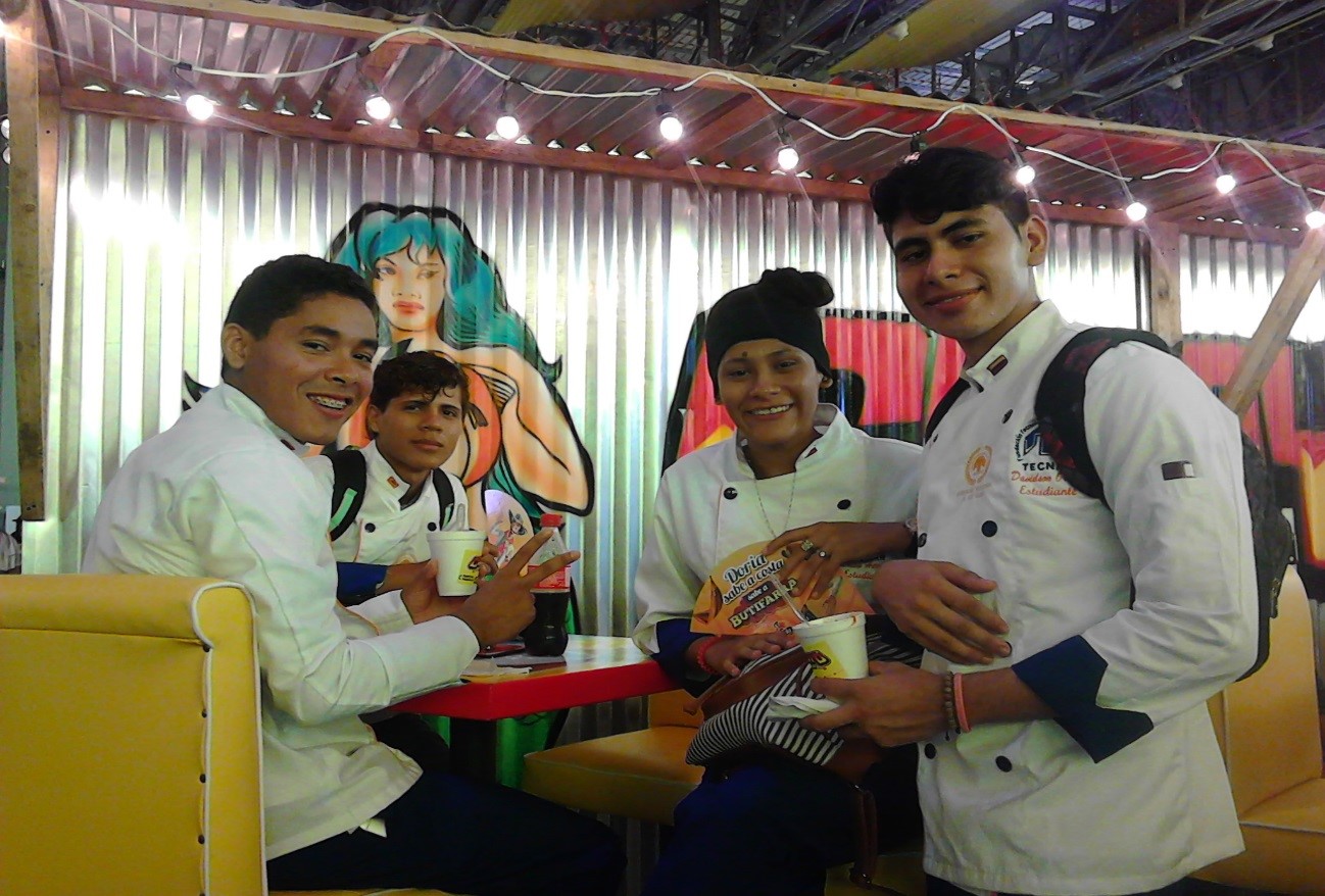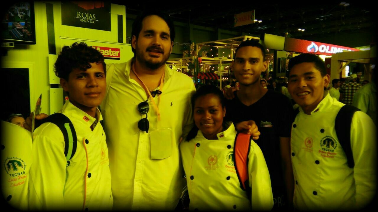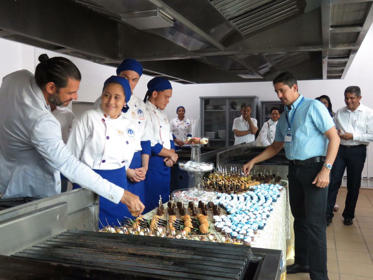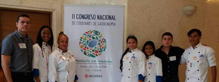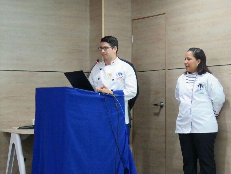 Estudiantes del programa TECNOLOGIA EN GESTION GASTRONOMICA, compartiendo conocimientos con el chef Abel Pérez del hotel Charleston; además el señor Javier Villalba y el docente Ermes Miller. En esta actividad los estudiantes prepararon menús especiales para demostrar sus habilidades.