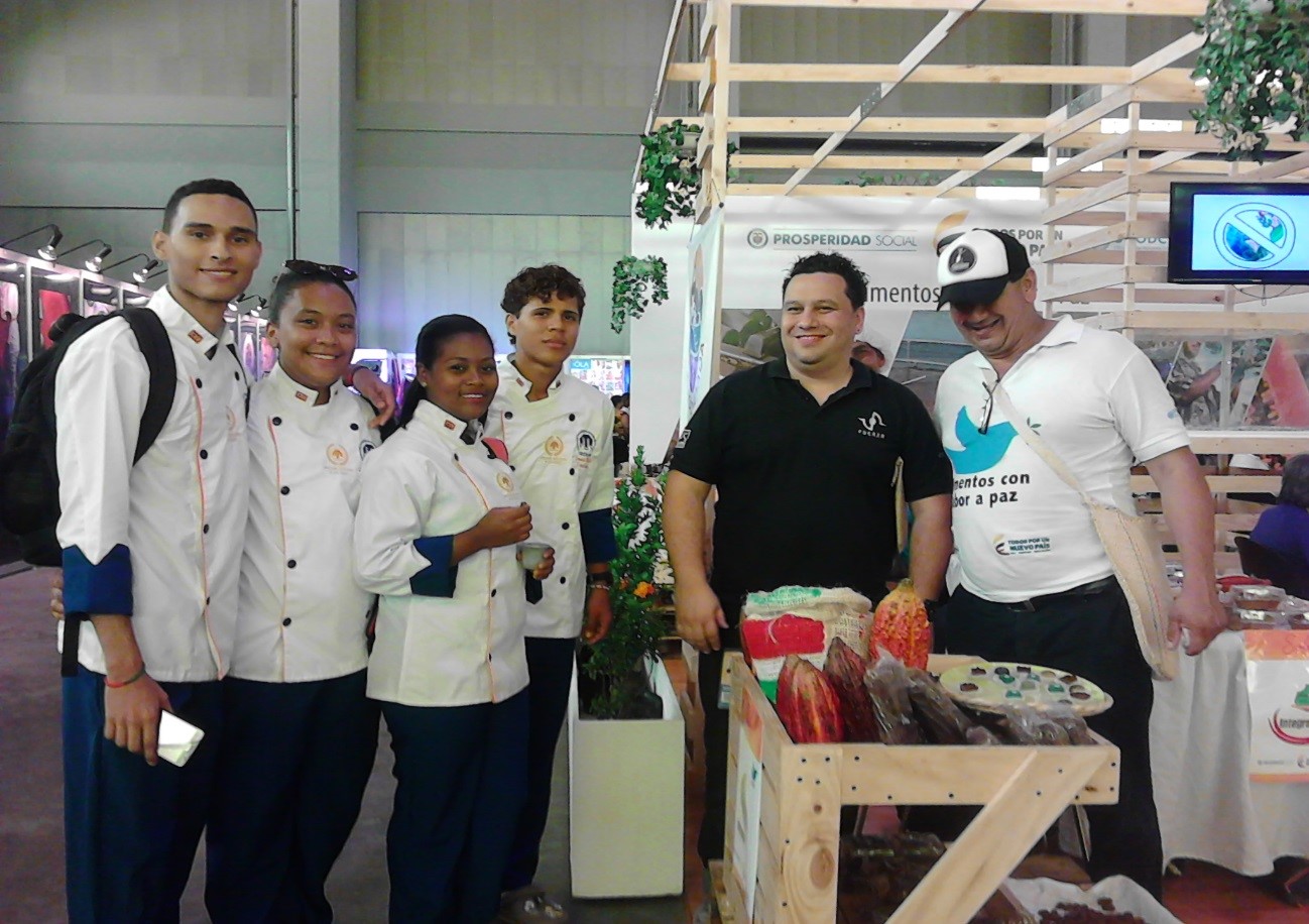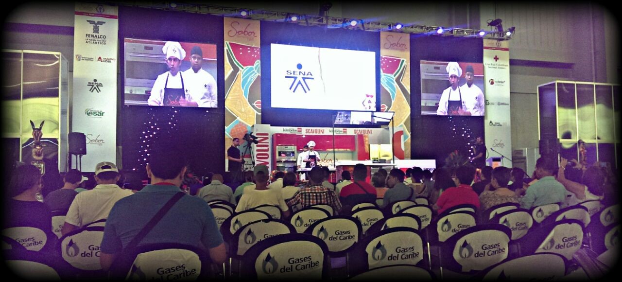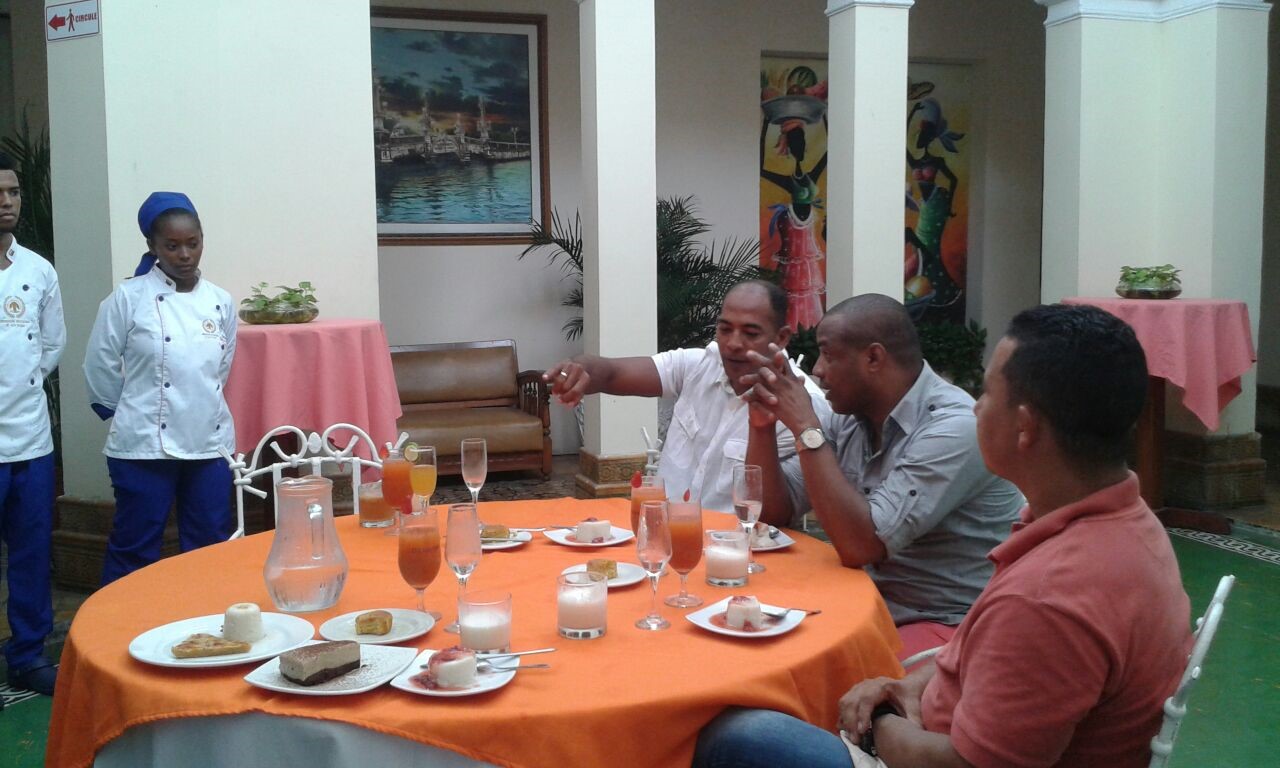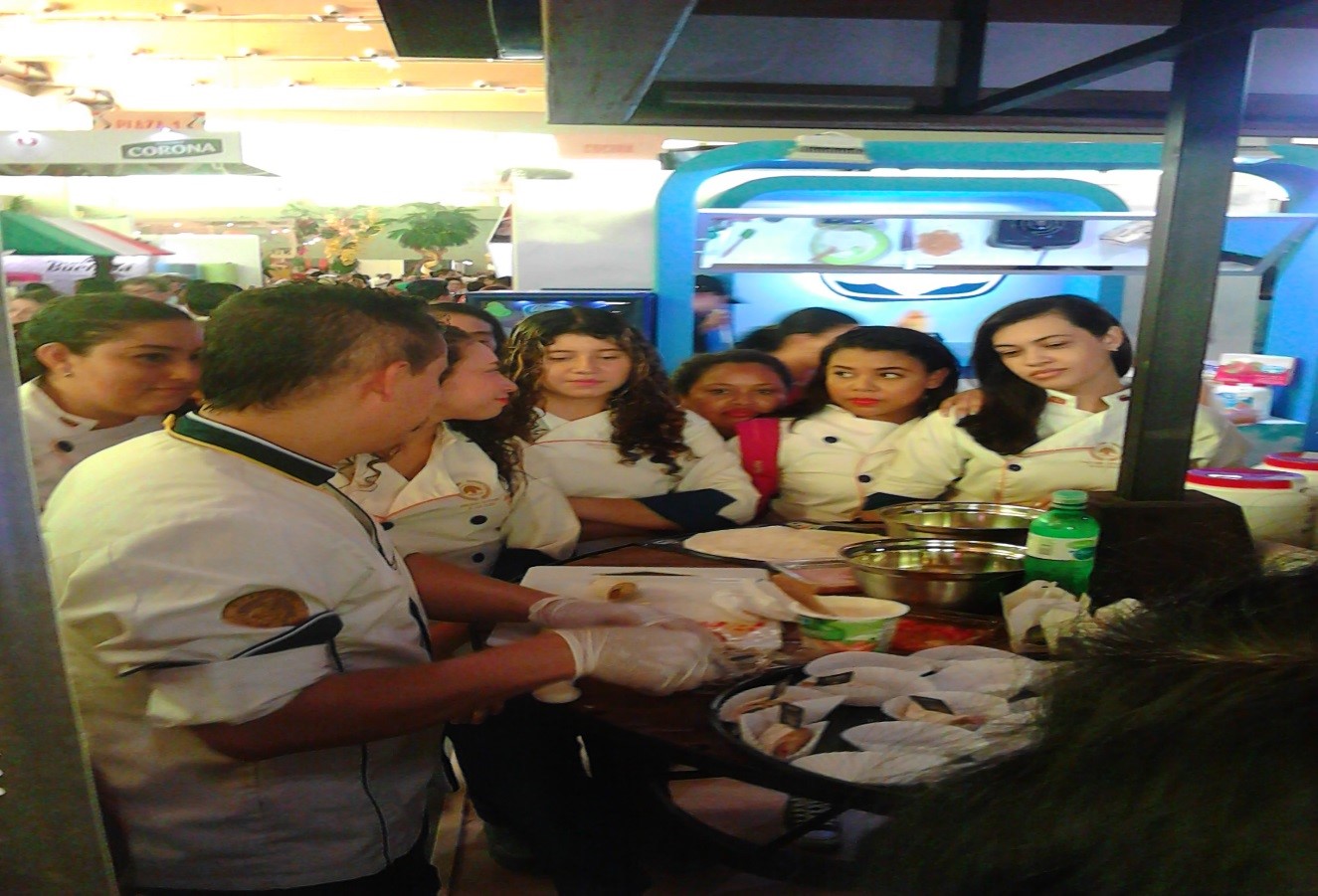 Estudiantes del programa TECNOLOGIA EN GESTION GASTRONOMICA, compartiendo conocimientos con el chef Abel Pérez del hotel Charleston; además el señor Javier Villalba y el docente Ermes Miller. En esta actividad los estudiantes prepararon menús especiales para demostrar sus habilidades.