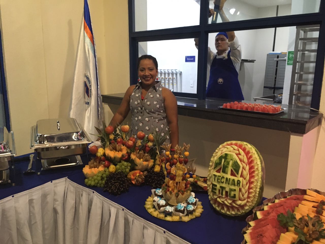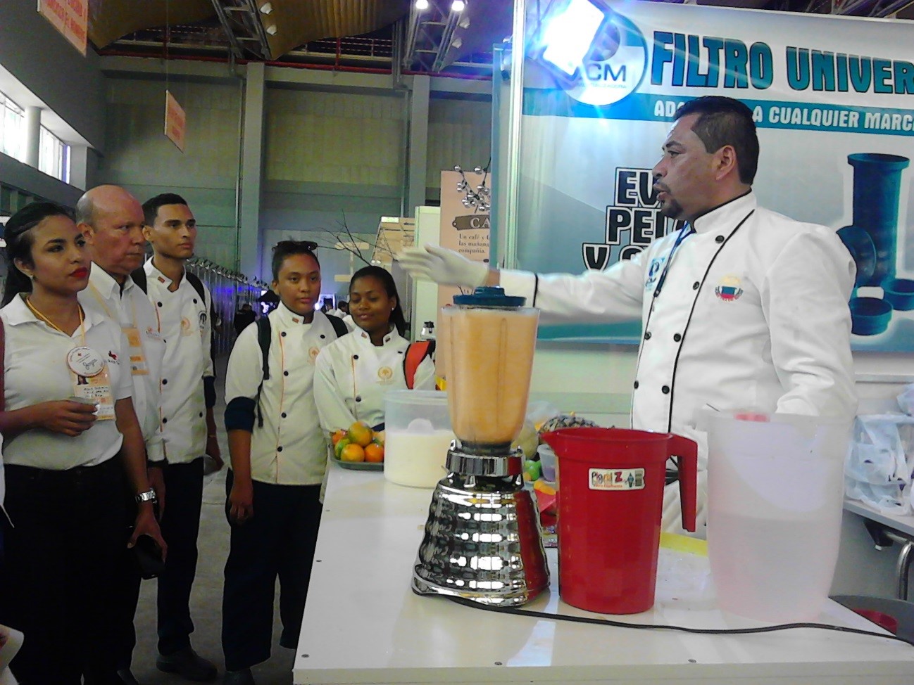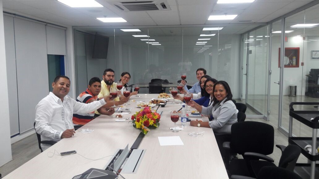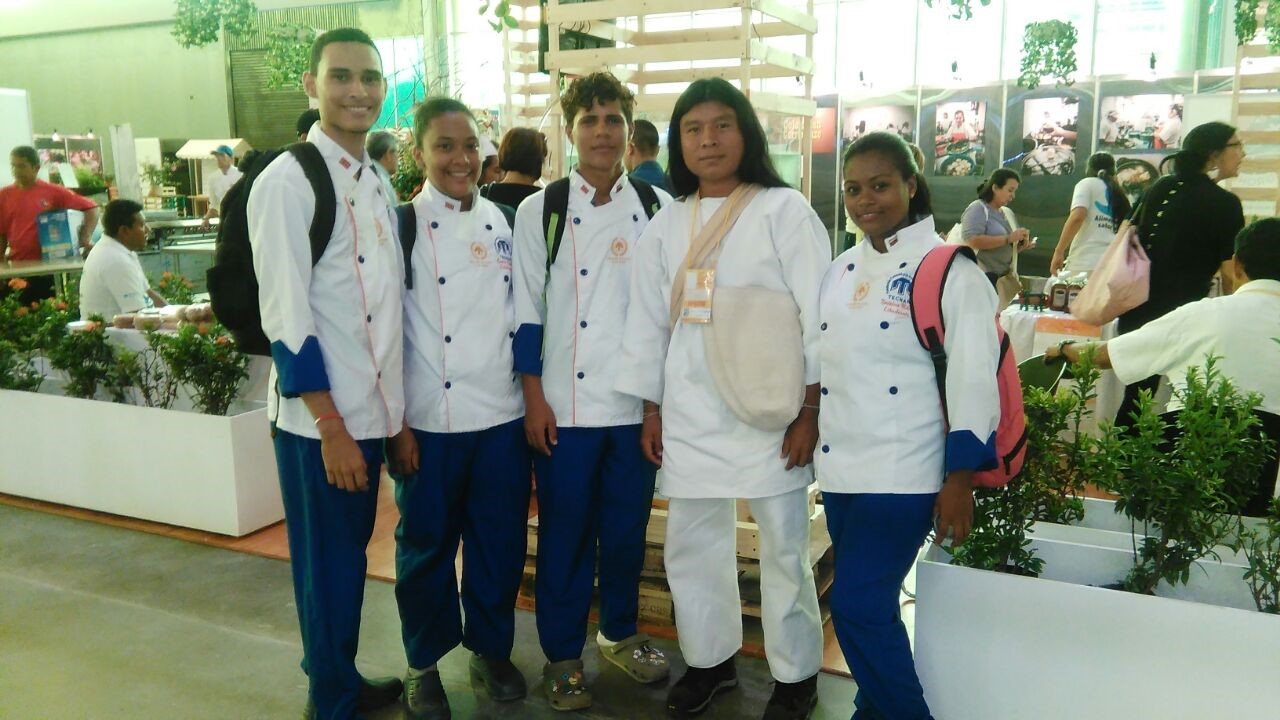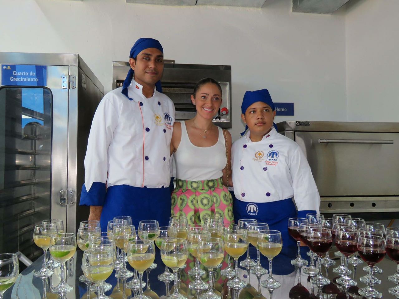 Estudiantes del programa TECNOLOGIA EN GESTION GASTRONOMICA, compartiendo conocimientos con el chef Abel Pérez del hotel Charleston; además el señor Javier Villalba y el docente Ermes Miller. En esta actividad los estudiantes prepararon menús especiales para demostrar sus habilidades.