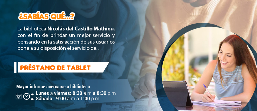 Objetivo: Servicio de préstamo de Tablet que la biblioteca Nicolás del Castillo Mathieu, brindara el próximo semestre a la comunidad académica, con el fin de apoyar su proceso de enseñanza aprendizaje
